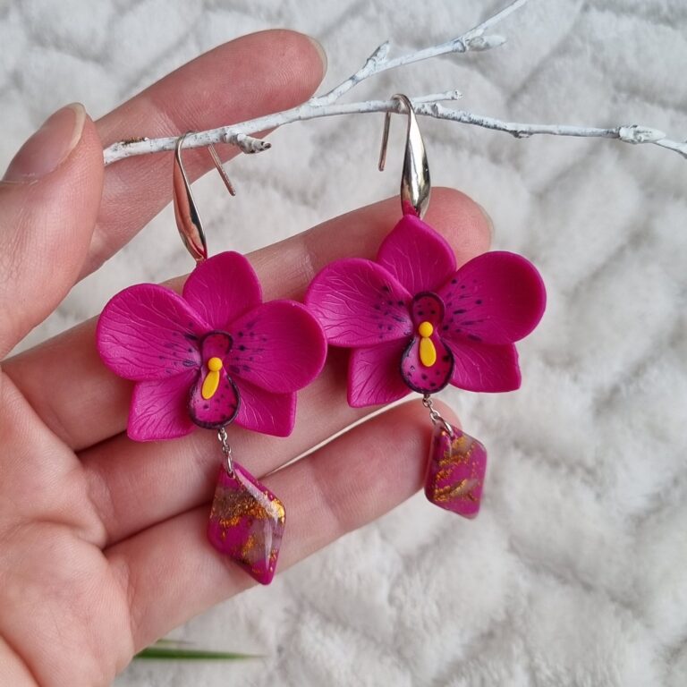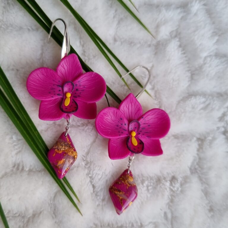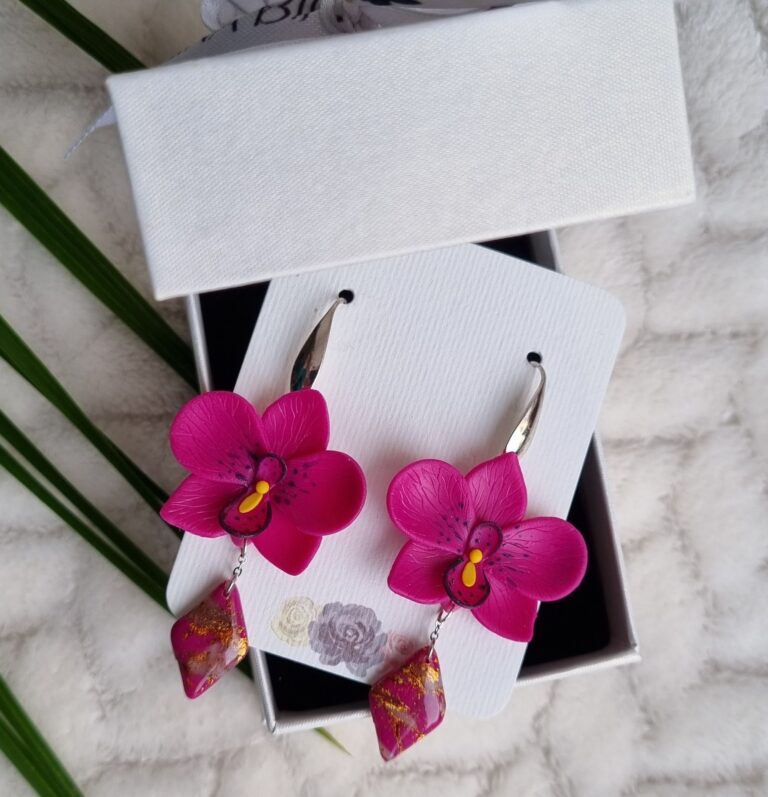 Indiferent de anotimp sau de vremea de afară, poți alege să îți înseninezi ziua purtând această pereche de cercei cu orhidee în cea mai vibrantă culoare. În plus, vei fi plăcut surprinsă să simți cum cerceii se mișcă o dată cu tine.